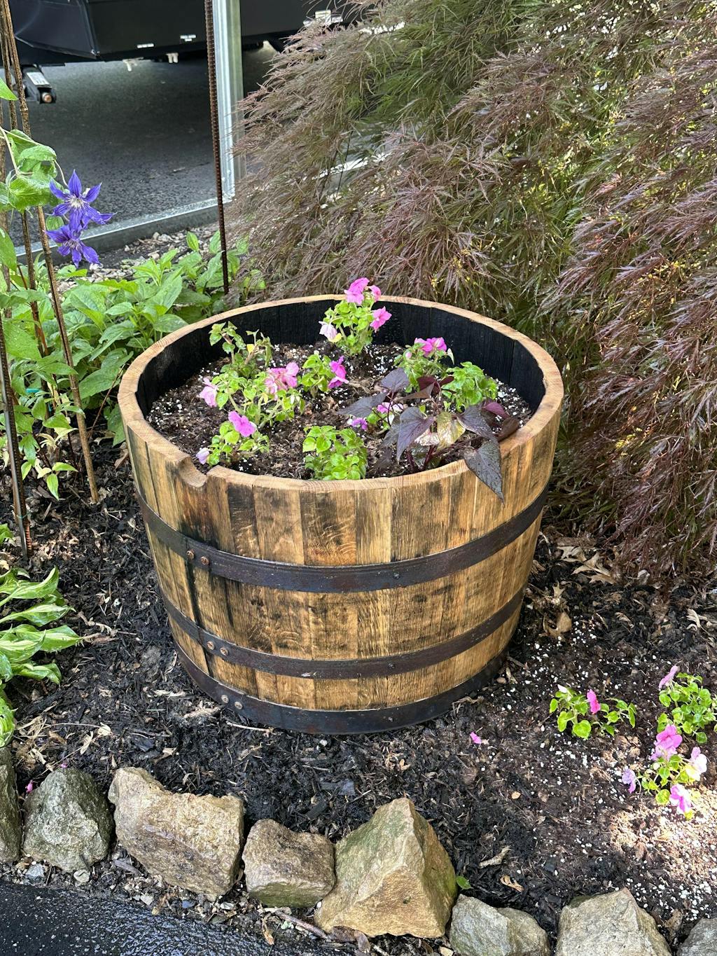 Half Bourbon/Whiskey Barrel Planter